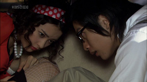 我很喜歡第六集熙靜為了整恩在,故意叫恩在跟武烈變裝去黑幫的飯店臥底,可憐的恩在不但被惡搞成30年代的茶店妹,兩個人在房間超間界的樣子也很可愛,尤其是恩在一躲進廁所,武烈馬上倒在床上打電話給勇洙(柳承洙飾)報平安,並說『從沒那麼累過』XDD,果然對一個頭腦簡單的人,要ㄍ那麼久比打壞人還累。跳脫戲裡,這兩個人合照也讓我尖叫阿,李民基弟弟你要不要換一下口味。妹妹也不錯阿~~XD